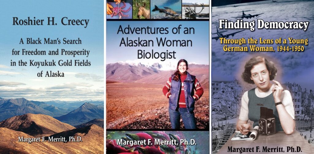 Margaret F. Merritt, Ph.D. is a research biologist, educator, author, public speaker, and outdoorswoman. She attended the University of California, Utah State University, and earned a Ph.D. from the University of Alaska. After decades writing and publishing in the scientific literature, she has recently focused her research and writing on historical biographies. She has lived in Alaska since 1977. “I like to bring forward stories of seemingly ordinary people who, like most of us, have flaws yet show remarkable characteristics that inspire us. I write to entertain, inform, and encourage the reader’s thoughtful reflection on past issues that remain relevant today.”